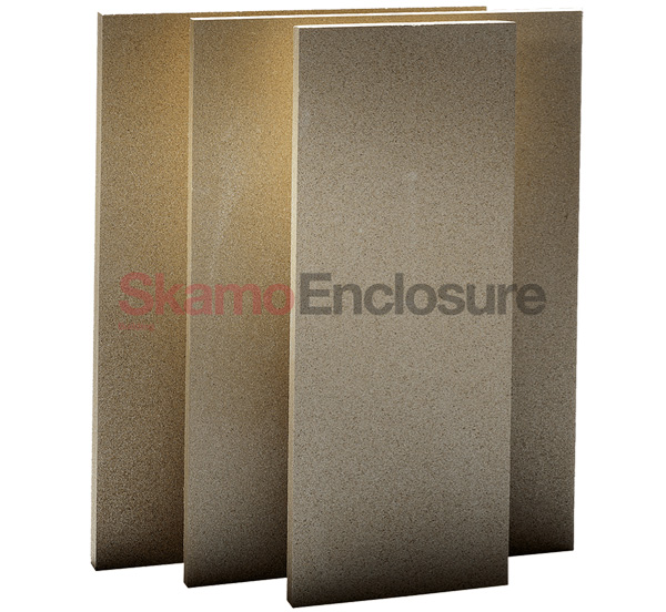 SkamoEnclosure Vermiculite Board wykonana z wermikulitu żaroodporna płyta o doskonałych właściwościach izolacyjnych, odporna na szok termiczny i bezpośrednie uderzenie płomieni. Płyty są łatwe w obróbce i montażu. Skład produktu pozwala na łatwe cięcie i kształtowanie za pomocą zwykłych narzędzi do obróbki drewna. Nadaje się do izolacji termicznej lub dodatkowej wszystkich konstrukcji ogniotrwałych. Obudowa paleniska nie nagrzewa się, możliwa jest zatem bardziej precyzyjna regulacja temperatury oraz skuteczniejsze rozprowadzenie ciepła w instalacjach DGP (z dystrybucją gorącego powietrza).